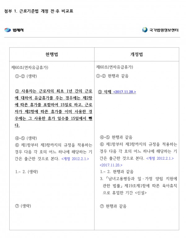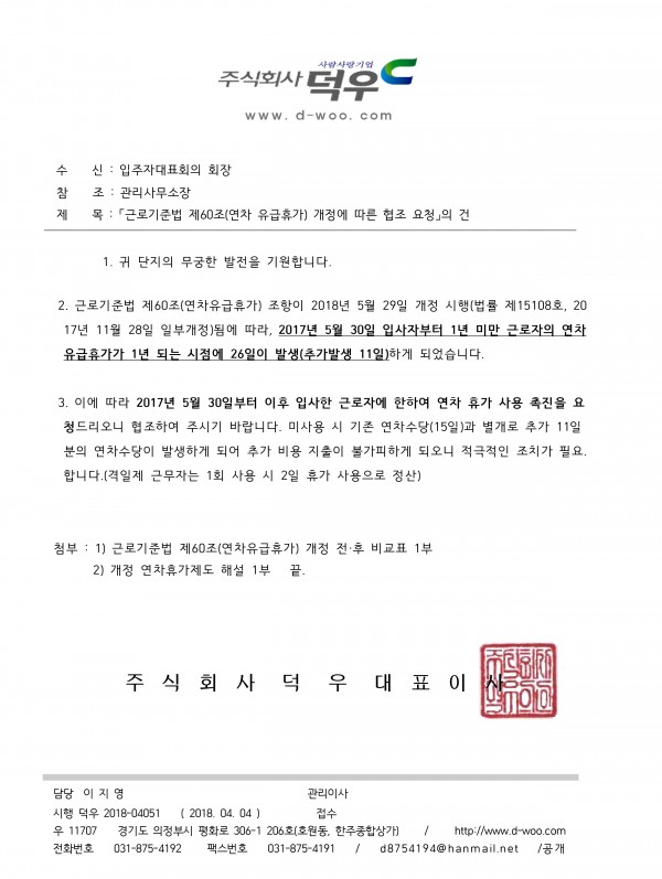 ★ 2018 근로기준법 일부 개정(연차휴가)에 따른 업무 협조